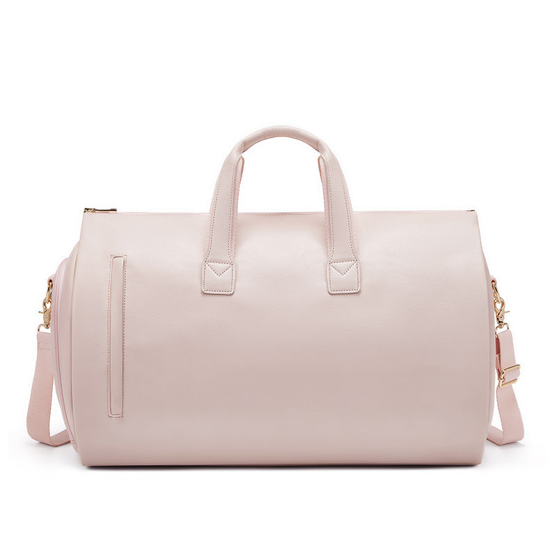 Garment Duffel Bag from LUGGITT®️ is the epitome of luxury travel accessories. Crafted from premium, eco-friendly recycled leather, this bag offers both elegance and sustainability. Available in the sleek brown, black & pink color that adds a touch of sophistication to your style.